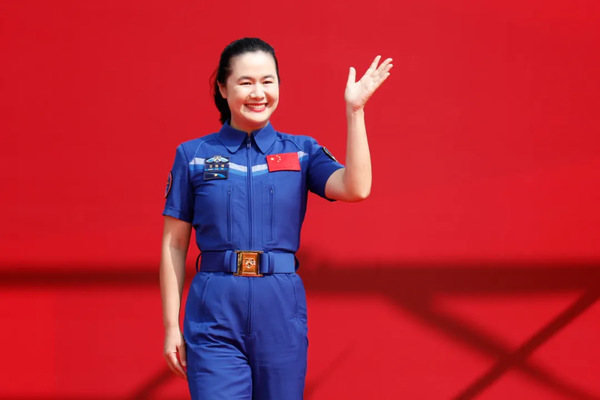在師生們的熱切期盼中,東南大學校友、中國首位女性航天飛行工程師、神舟十九號載人飛行任務航天員王浩澤從“學術之門”中走出,現場爆發出熱烈的掌聲。