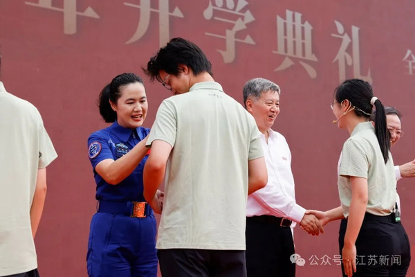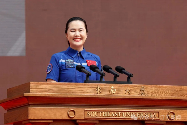 在師生們的熱切期盼中,東南大學(xué)校友、中國首位女性航天飛行工程師、神舟十九號載人飛行任務(wù)航天員王浩澤從“學(xué)術(shù)之門”中走出,現(xiàn)場爆發(fā)出熱烈的掌聲。
